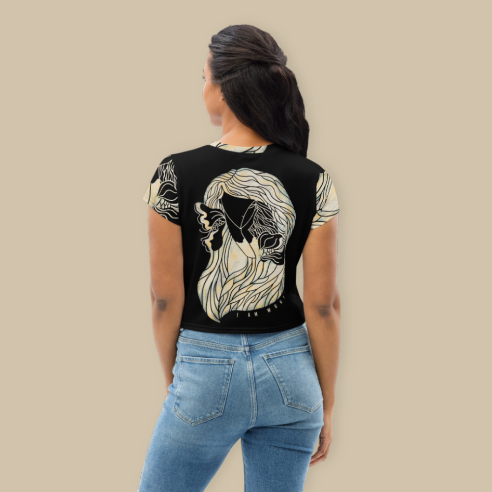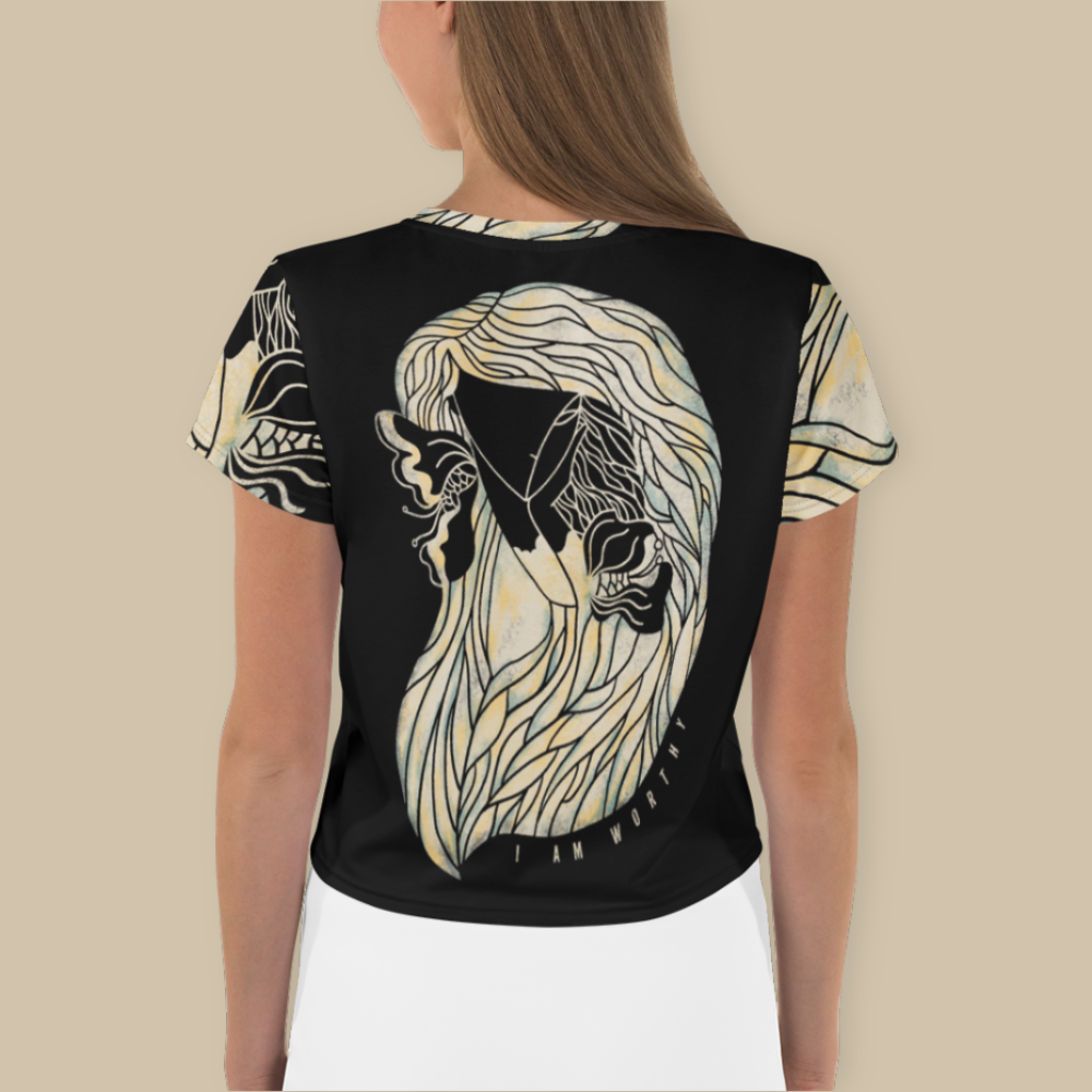 Looking for you next wardrobe favorite? Well, look no further because this crop tee is printed and sewn to fit you just right. To top that off, the original all-over design is definitely worth showing off, so don't hesitate to own one of these tees - they're meant to be adored.