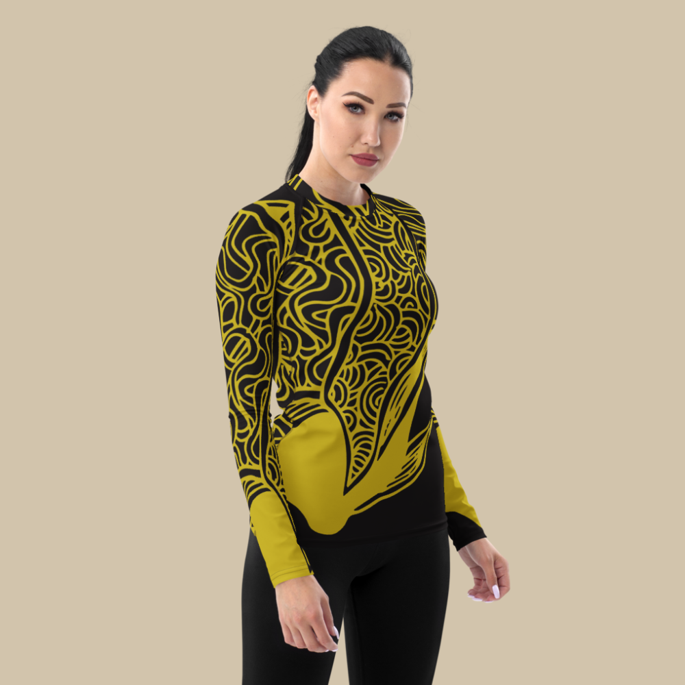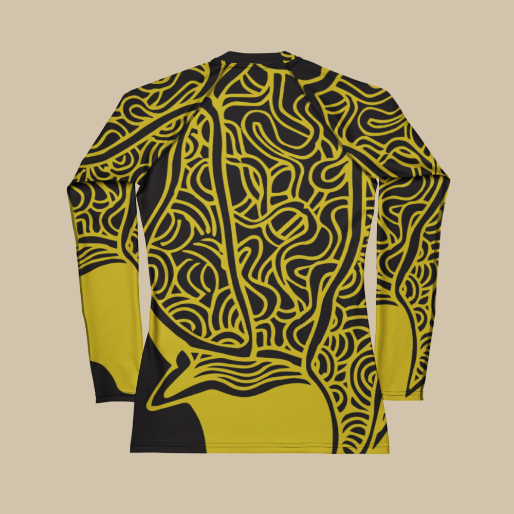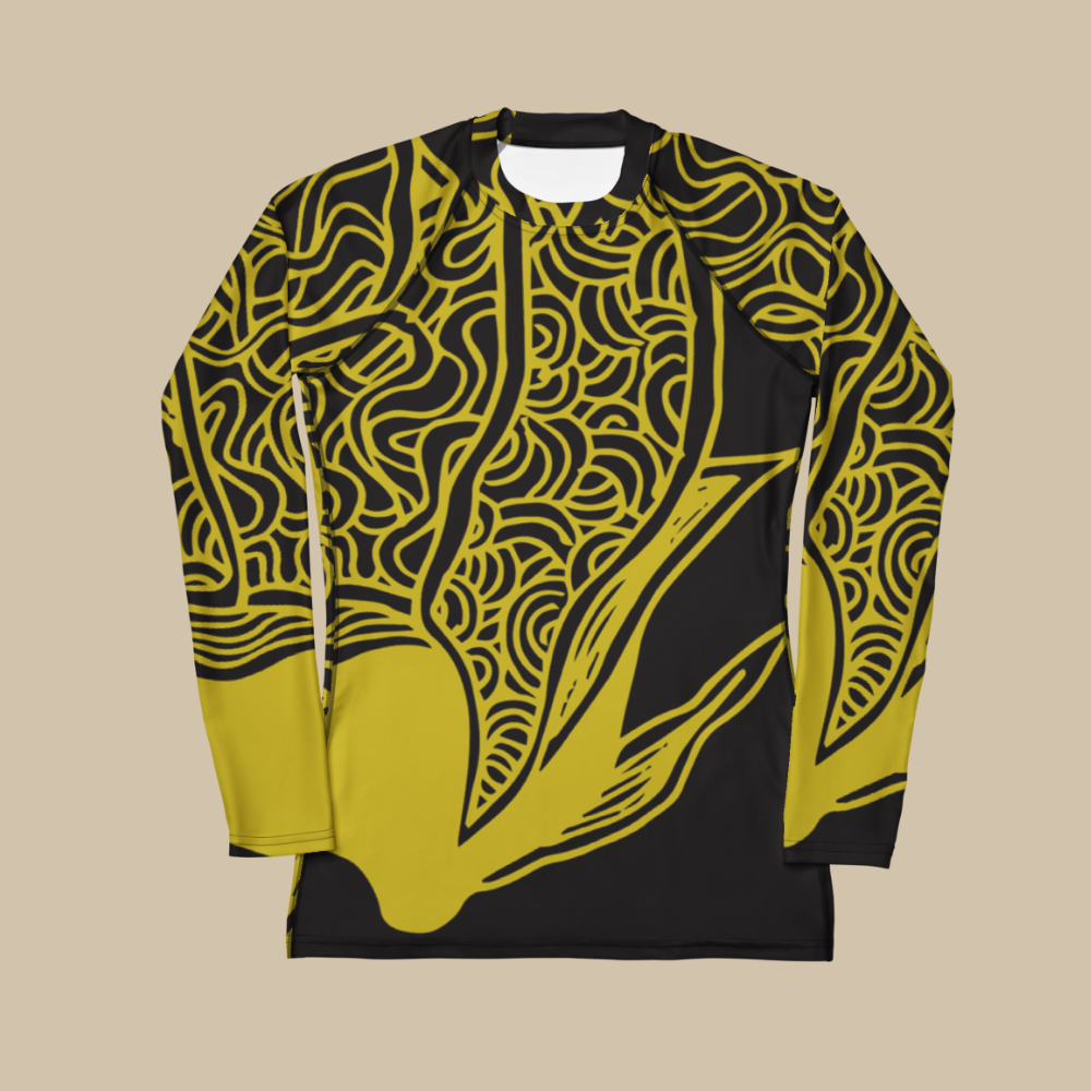 Flow meets resilience in the Gintara Rash Guard — a design born from hand-drawn zentangle florals, layered with depth and intention. Each line holds both softness and strength, reminding you to carry beauty with you wherever your practice takes you.