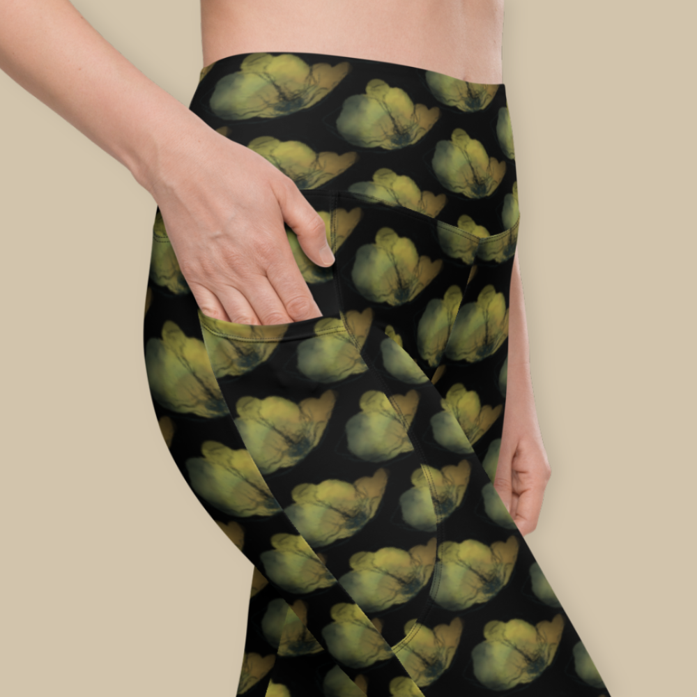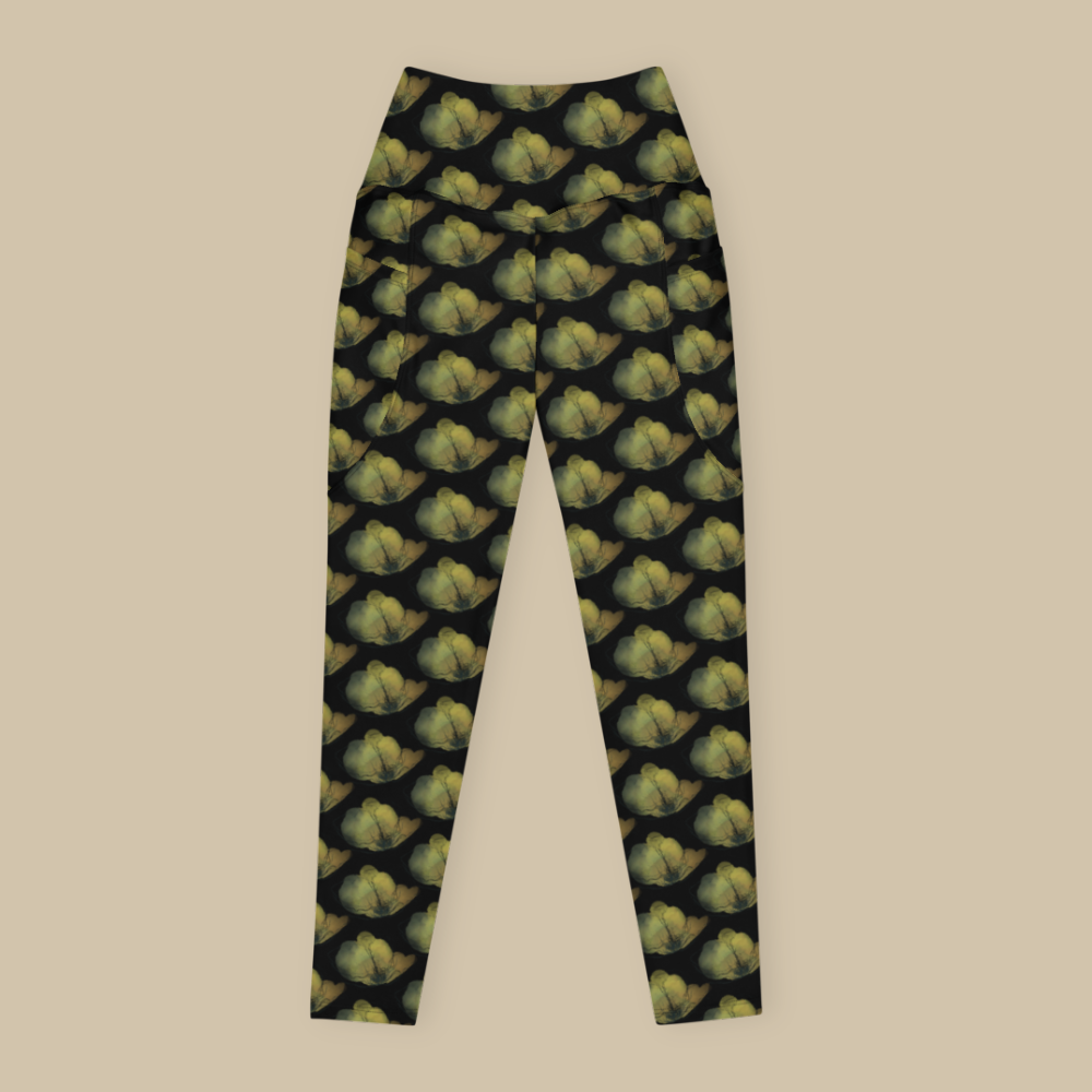 Painted with digital brushes in deep moss and golden hues, Mossglow captures the quiet power of nature in motion. Inspired by the subtle radiance found in forest light, this design blends earth tones with energy — grounding and activating at once. These leggings were made to move with you through every challenge and triumph, supporting performance with ease and style.