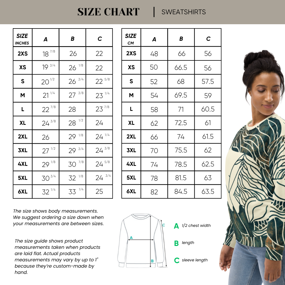 Each unique, all-over printed sweatshirt is precision-cut and hand-sewn to achieve the best possible look and bring out the intricate design. What's more, the durable fabric with a cotton-feel face and soft brushed fleece inside means that this sweatshirt is bound to become your favorite for a long time.