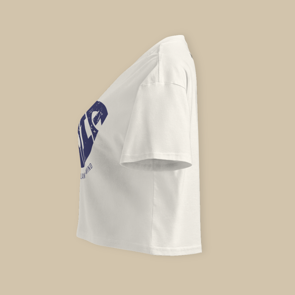 This crop top is made of 100% combed cotton, which makes the shirt extremely soft and more durable than regular cotton shirts. The relaxed fit and dropped shoulders ensure comfortable wear, while the cropped length makes it perfect for spring and summer.