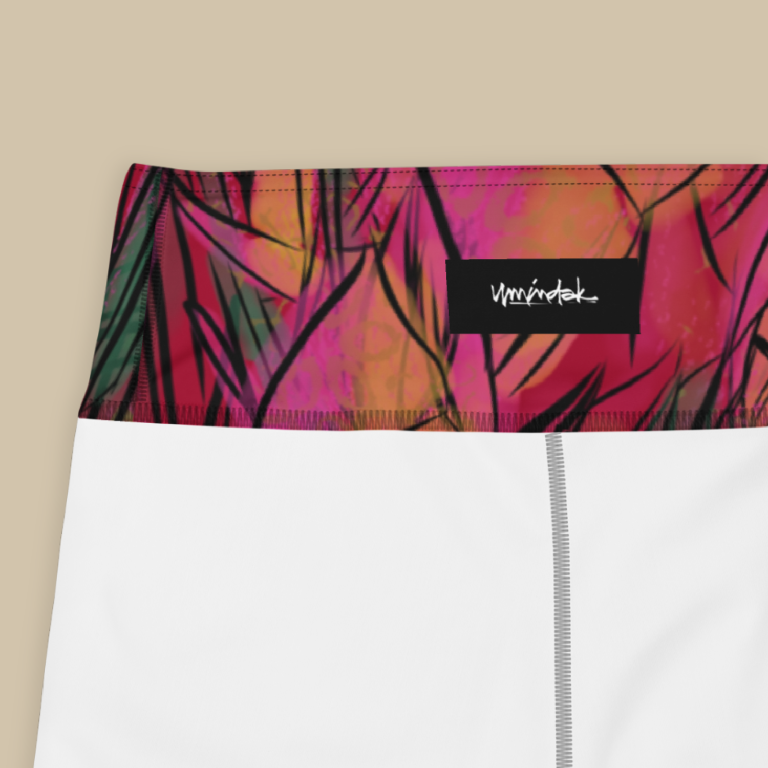 Born from firelight and movement, Flareline radiates energy through vivid strokes of pink, orange, and black. This design emerged from Det’s intuitive drawing process — layered, abstract lines resembling illuminated foliage or sparks in the night. Originally hand-rendered with digital brushes, the final repeat composition crackles with bold elegance. Whether you're stretching through sunrise yoga or styling a statement look, these leggings are made to empower your expression.